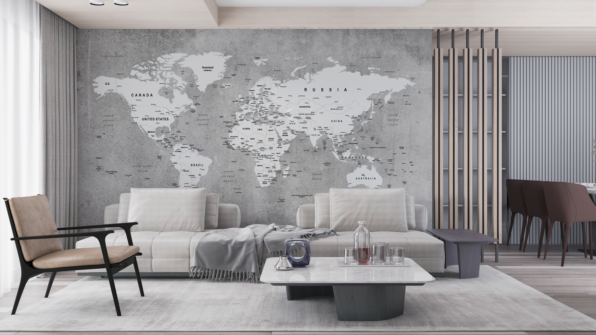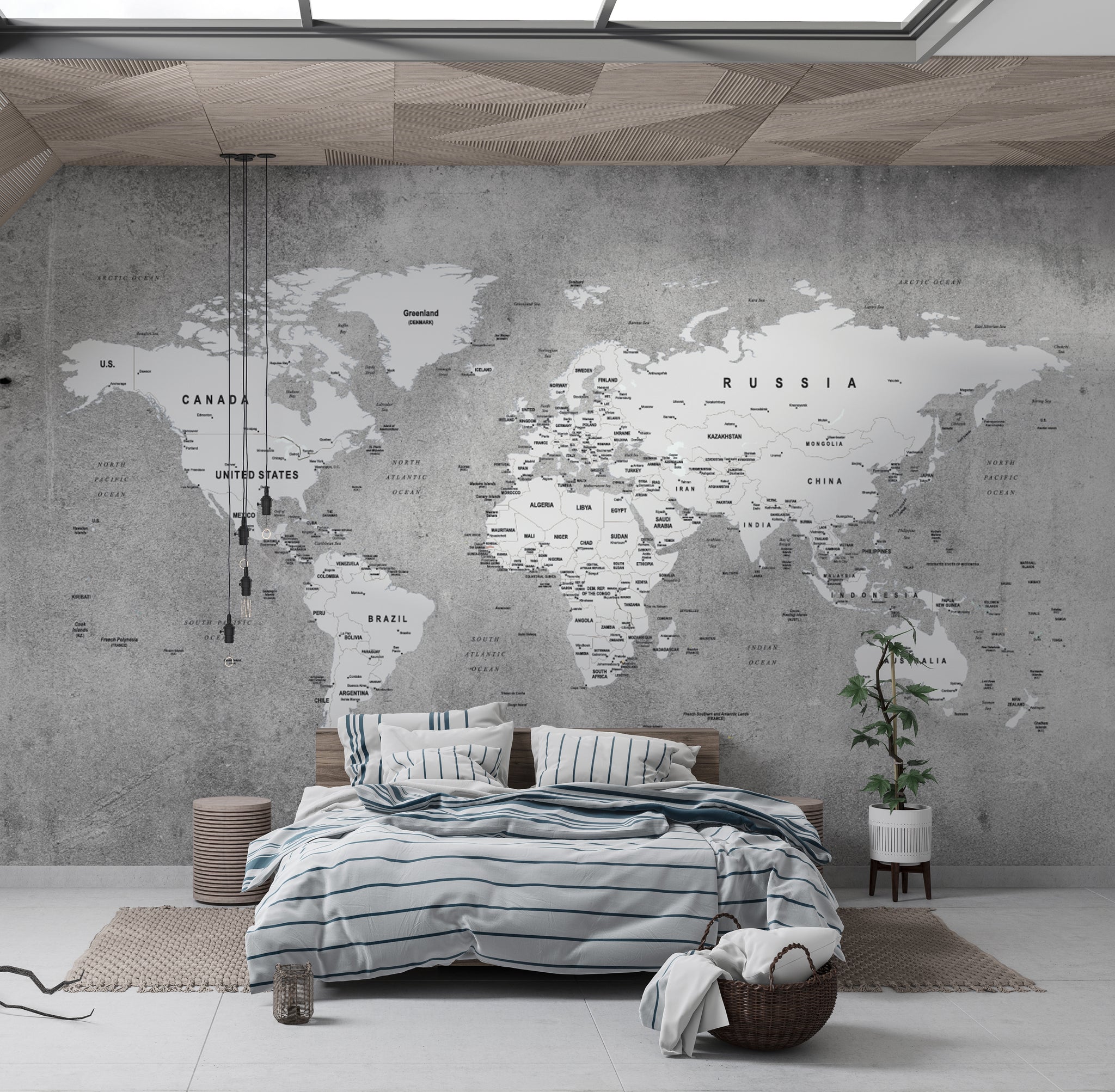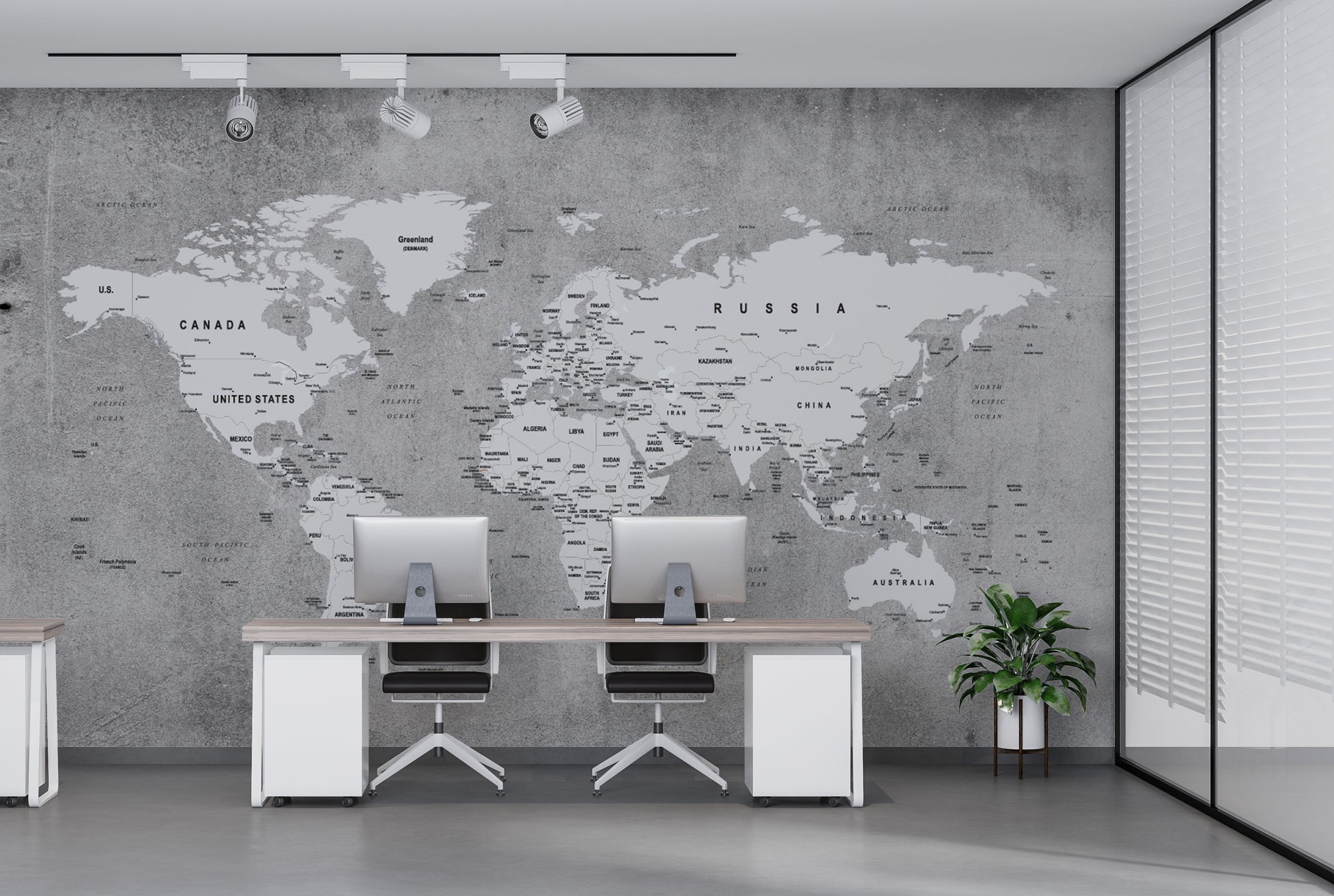• Load image into Gallery viewer, World Map with concrete wallpaper , wall mural