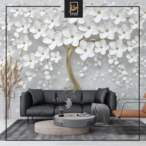 3d wallpaper tree flower removable wallpaper White 3D Floral wall mural linving room bedroom