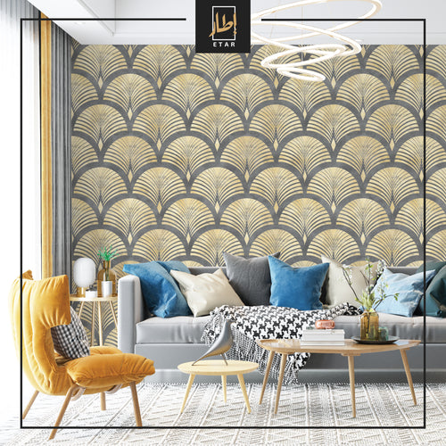 • Art Deco Arches Seamless Grey and yellow Color wallpaper