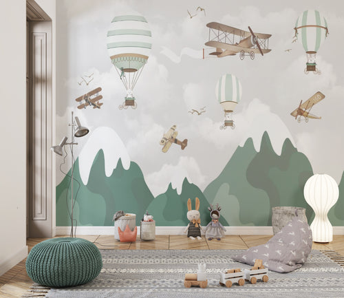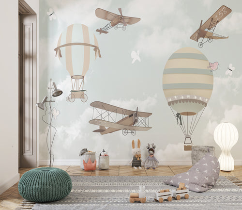 Flying Animals Kids Wallpaper Hot Air Balloon